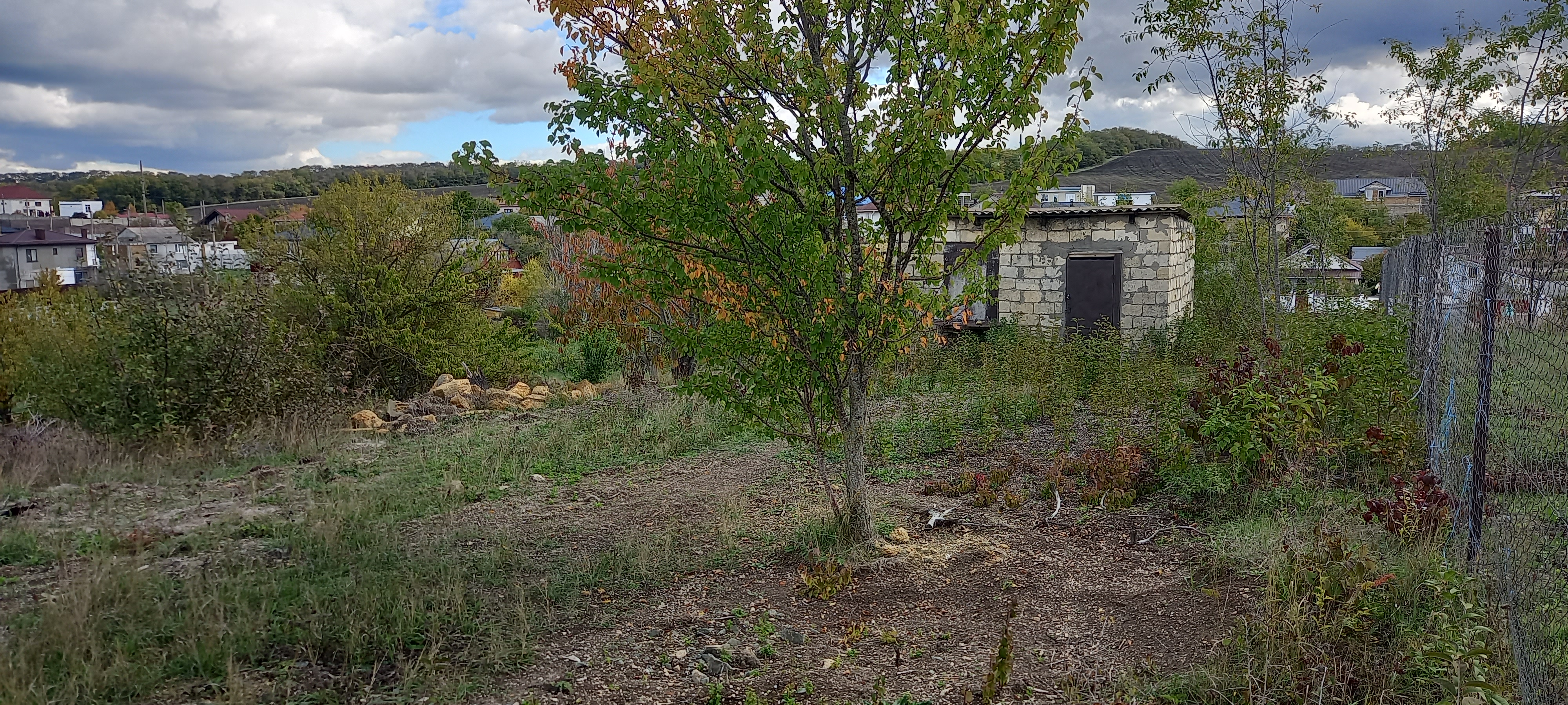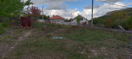 Большой участок площадью 9 соток. Вид разрешенного использования: ведение садоводства. Участок прямоугольный, размеры 29*34м, есть небольшой склон. Электричество по границе участка, газ через два участка, вода- надо делать скважину. Дорога - большая часть подсыпана гравием. частично грунтовая. На участке небольшой сарай из камня для хранения инвентаря.