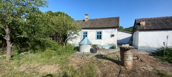 Дом 54,6 кв.м, требует ремонта, но в нем можно проживать. Есть хозпостройки, баня. Вода -колодец с чистой водой. Электричество проведено. Газ - вдоль забора. Сейчас ведутся работы по прокладке центрального водопровода.