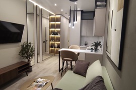 Продам студию в строящемся ЖК у моря! Общей площадью 25 кв.м. Жилая площадь 11 кв.м. Зона кухни 4 кв.м! Санузел совмещенный Лоджия с видом на море. Двухуровневый подземный паркинг. Квартира в отделке white box с возможностью дизайнерского ремонта от застройщика.