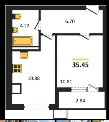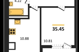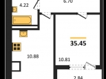 Квартира общей площадью 35,45 м.кв, с просторной кухней 11 м.кв.
